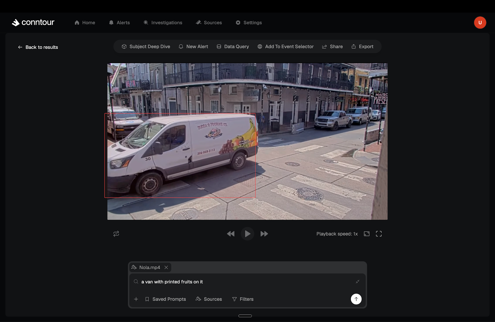 You simply describe what you’re looking for in English. You prompt your camera network with: “a van with a print of fruits on it”. Within 5 seconds, Conntour scans all available footage and shows you exactly where that van was spotted. Furthermore, you can set real-time alerts. Every new sighting automatically sends you a notification as the vehicle continues moving.
